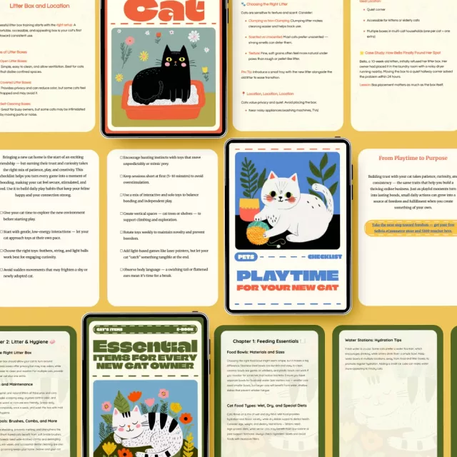 • Essential Items for Every New Cat Owner – An eBook that covers everything you need to prepare your home and life for a new cat, from food and toys to grooming essentials.