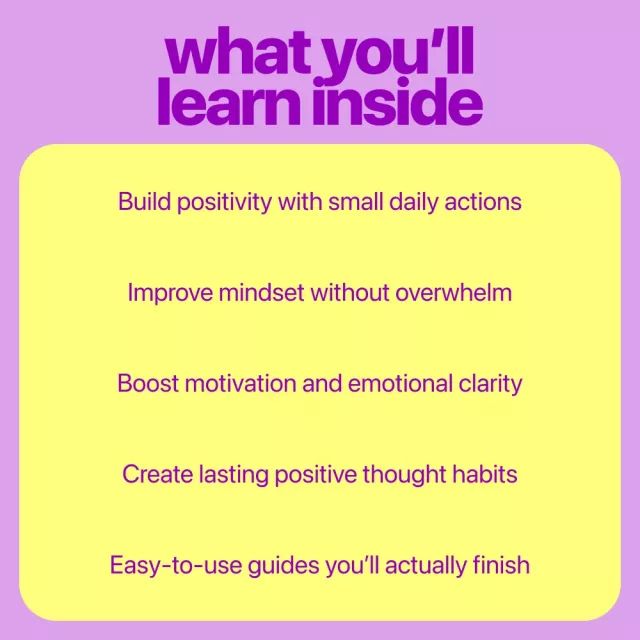 I really like how everything works together as a system instead of random worksheets. The checklist keeps me accountable, and the guide explains positivity clearly. I just wish there were a few more interactive exercises to deepen the experience.