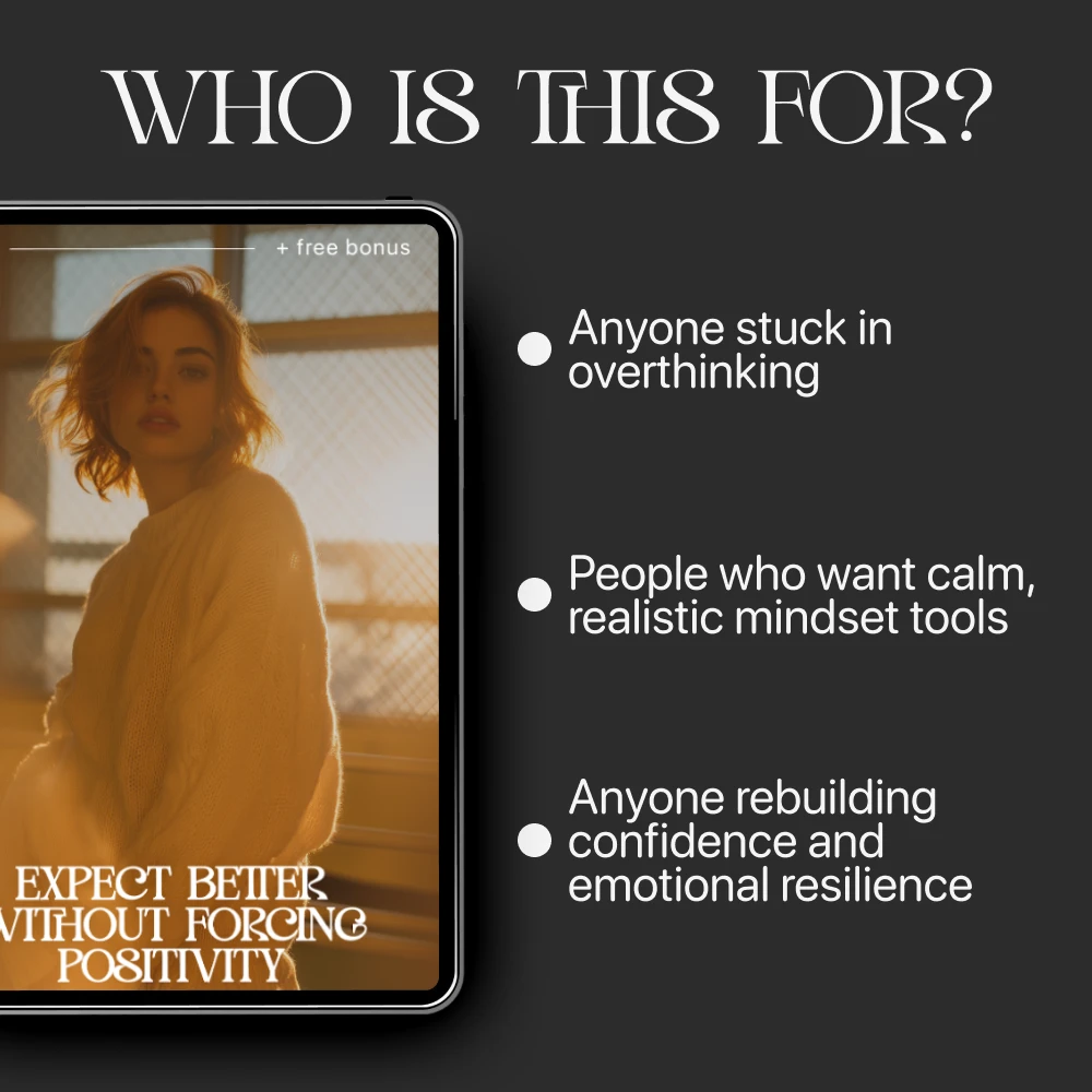 If you’re ready to stop fighting your brain and start working with it, download Expect Better Without Forcing Positivity today. This isn’t about pretending everything is fine — it’s about learning how to respond better when it’s not. Click purchase, access instantly, and start building clearer, calmer thinking right away.