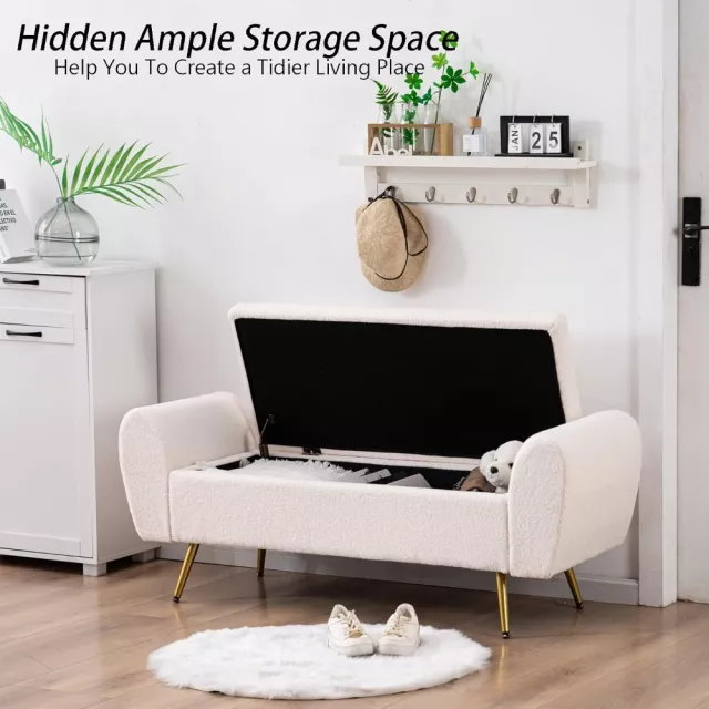 Transform your bedroom into a stylish and organized sanctuary with this Extra Long Storage Bench. Designed to perfectly complement larger beds, especially Queen and King sizes, this modern upholstered bench with sleek gold legs adds a touch of luxury and sophistication. The unique arms enhance the design while offering additional comfort and support. Whether placed at the foot of your bed or used as extra seating, this bench is more than just a pretty piece – it’s a practical solution for your storage needs.