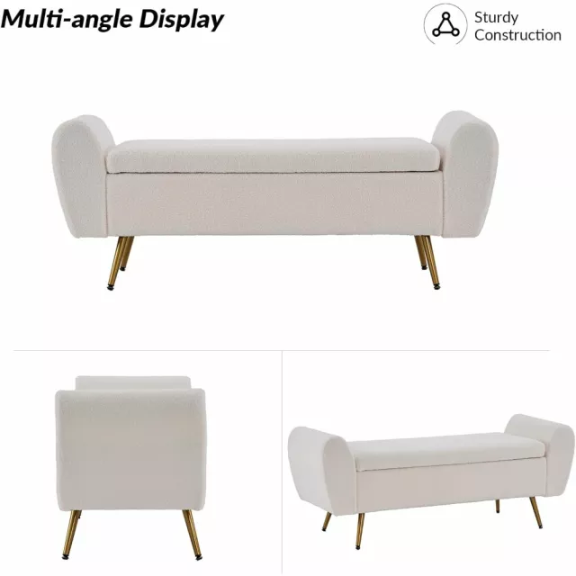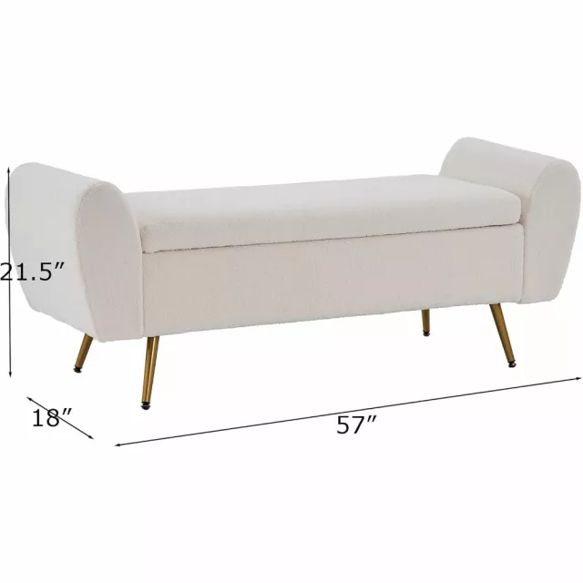 Extra Long Storage Bench with Gold Legs for King Size Bed – Upholstered Ottoman Bench with Arms