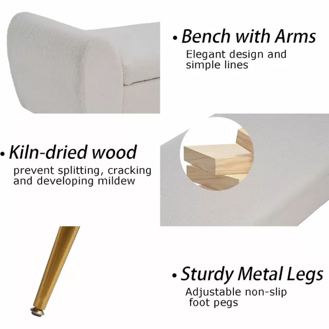 • Stylish Arms and Gold Legs: The elegant arms and shiny gold legs make this bench a standout piece in any room. It fits effortlessly into modern, minimalist decor while elevating the overall look of your space.