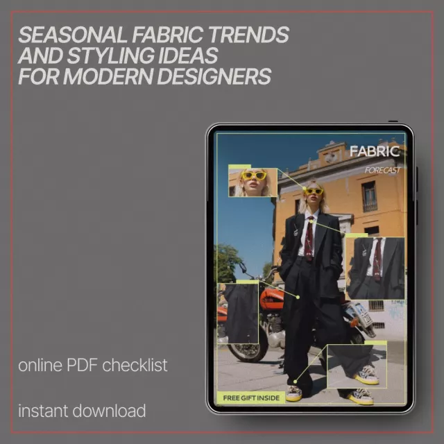 This checklist is perfect for fashion designers, students, stylists, boutique owners, DIY sewists, and trend-conscious creatives. Instead of sifting through endless articles or trend reports, you get a focused, actionable overview of what fabrics are trending this season in one convenient place.
