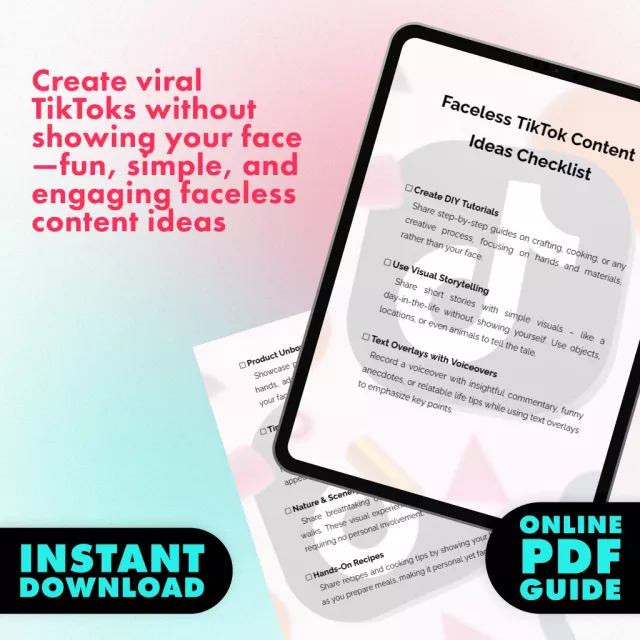 Faceless TikTok Content Ideas Checklist | Digital Download for Viral Faceless TikTok Videos, eBook Style Guide, Viral Content Creator Resource