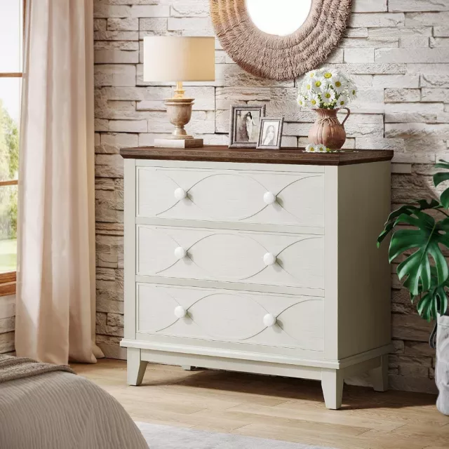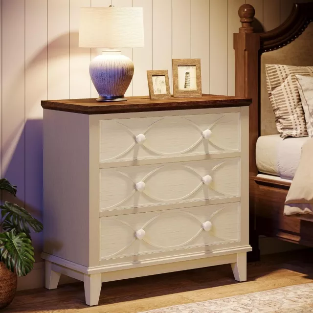 Enhance your bedroom or living space with this beautifully designed 31.5″ Farmhouse Nightstand Set of 2. Blending rustic charm with modern functionality, these oversized nightstands bring a cozy yet elegant farmhouse aesthetic to any room. With a distressed white body, a rich brown top, and ornate drawer detailing, these pieces add a warm, welcoming touch that feels both timeless and stylish. Whether you’re updating your bedroom decor or seeking a statement end table for your living room, this versatile set delivers beauty and practicality in one smart design.