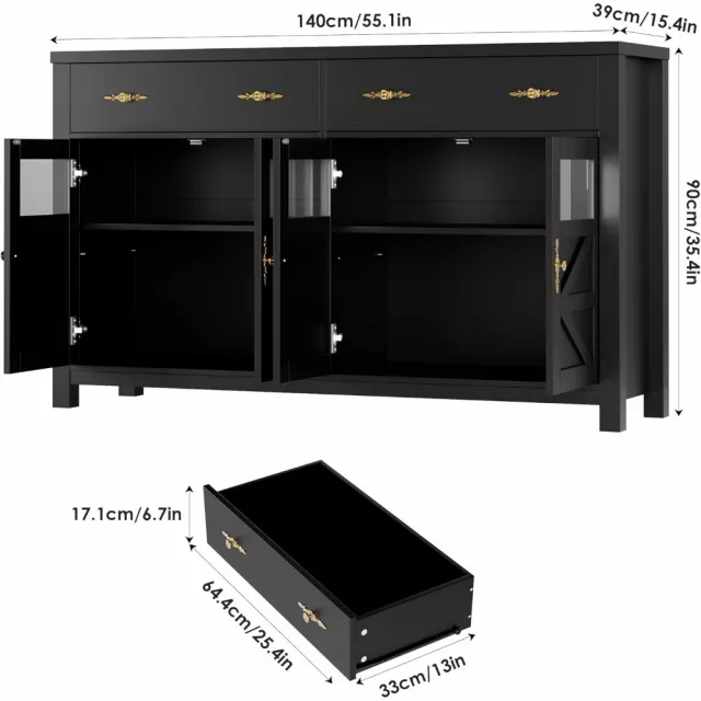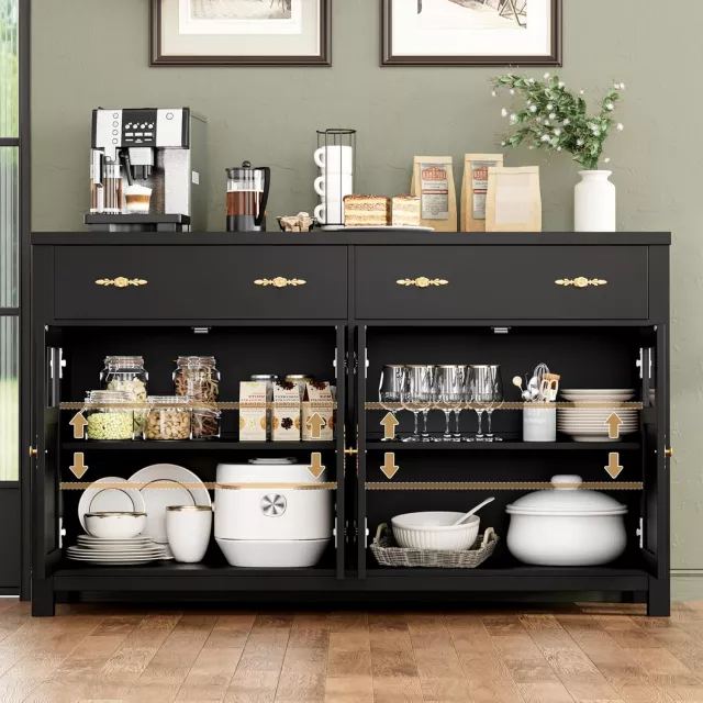 Bring timeless charm and smart storage to your kitchen or dining area with this beautifully crafted 55.1” Farmhouse Sideboard Buffet Cabinet. Designed with clean lines, a sleek black finish, and modern farmhouse appeal, this cabinet adds warmth and organization to any space. Whether you’re hosting guests, organizing dishes, or displaying your favorite décor, this versatile buffet cabinet is the perfect centerpiece for your home.