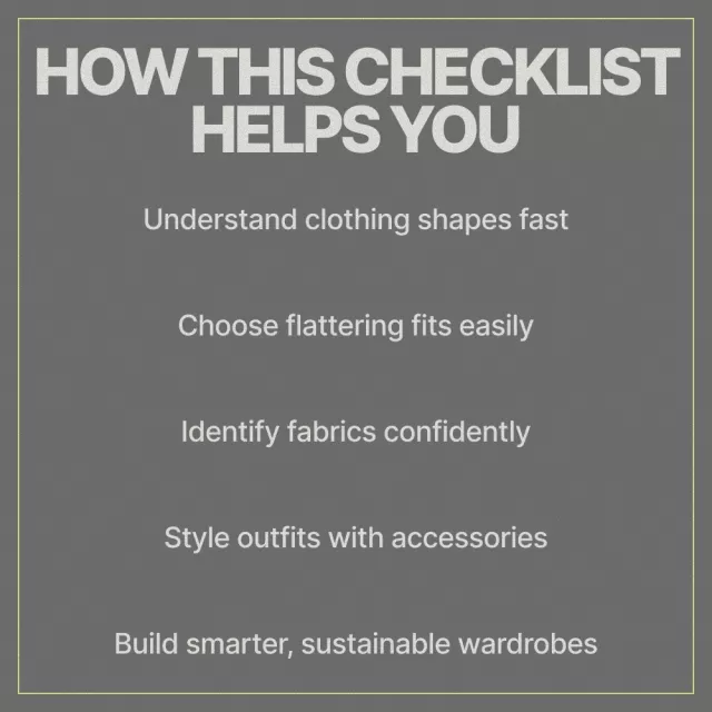 This checklist is ideal for beginners, students, aspiring fashion enthusiasts, and anyone who feels unsure about fashion terminology. If you’ve ever searched for fashion terms beginners should know, this resource was made for you.