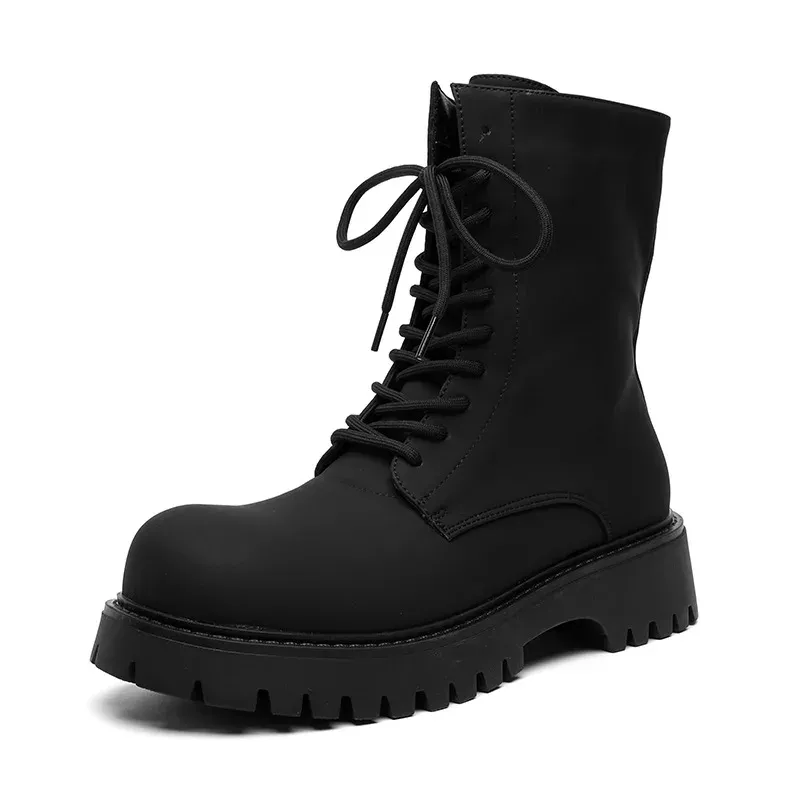Black Vintage British Men’s Ankle Boots – Leather Outdoor Motorcycle Style