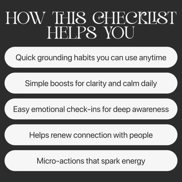 Ready to reconnect with yourself in a way that feels easy, refreshing, and truly supportive? Download the Feel Alive Again Checklist today and bring more presence, joy, and meaning into your everyday life.