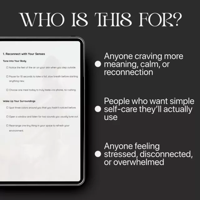 This guide is perfect for anyone feeling stuck, numb, stressed, or simply craving more aliveness in their everyday life. Whether you’re navigating burnout, rebuilding routines, or beginning a new wellness chapter, the Feel Alive Again Checklist meets you exactly where you are.