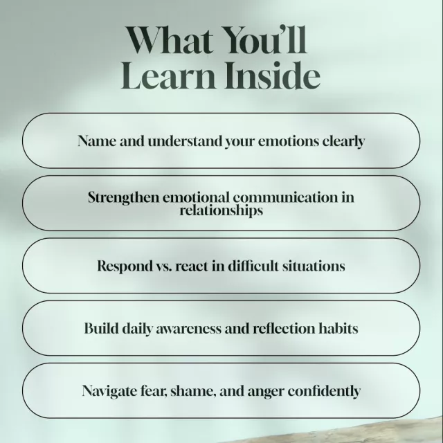 • Chapter 1: What Is Emotional Awareness? – Understand the core concept, its difference from emotional intelligence, and how to reflect instead of react.