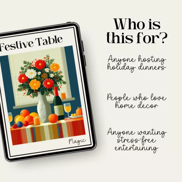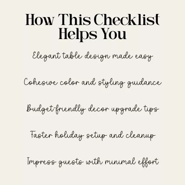 Unlike long, overwhelming decor guides, Festive Table Magic is built as a clean, action-based checklist. It gives you direct steps instead of vague inspiration – so you always know what to do next. It blends visual styling with practical hosting details like warmth, spacing, and cleanup prep, so your table is not just pretty, but also functional.