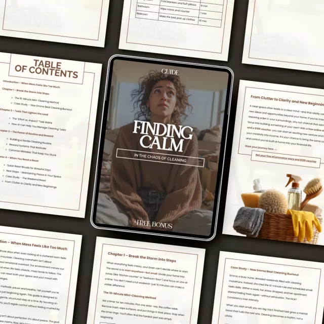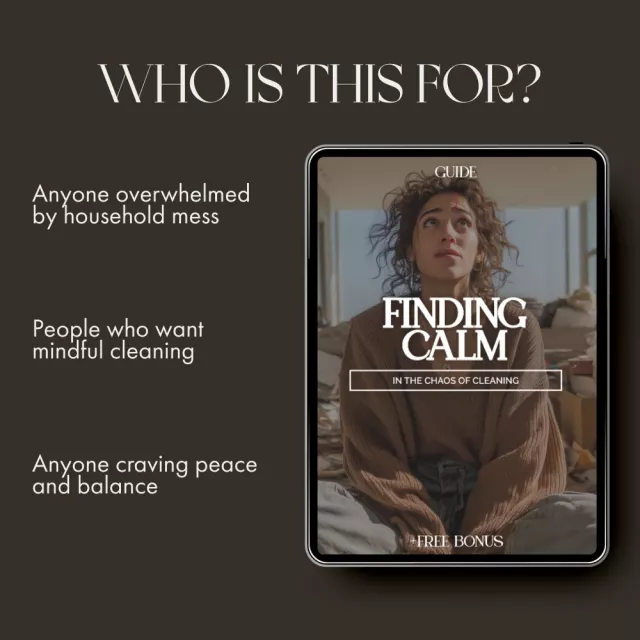 Download your copy of Finding Calm in the Chaos of Cleaning today and transform the way you approach your space. Your peace of mind starts with one page—and one simple action.