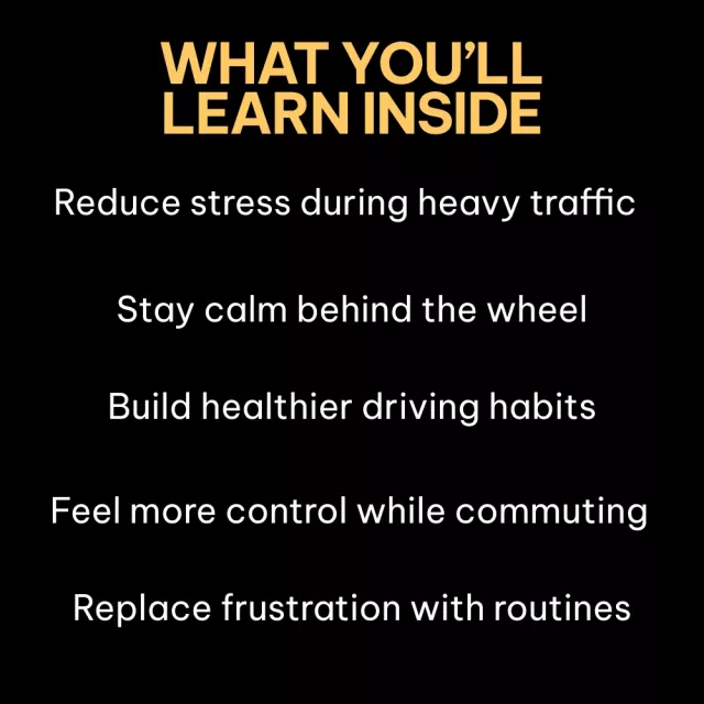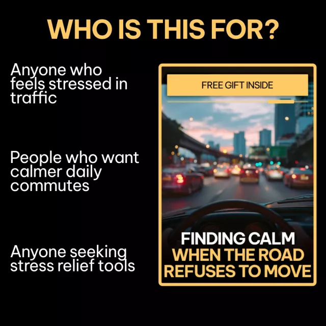 This guide is perfect for commuters, city drivers, rideshare drivers, and anyone who feels overwhelmed, irritated, or emotionally drained by traffic. If you want calm driving without complicated routines or unrealistic expectations, this was created for you.