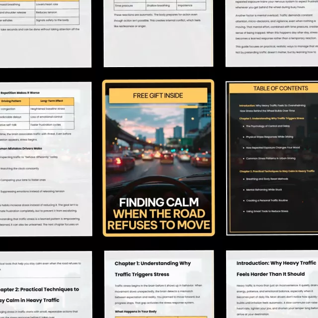 Heavy traffic can turn an ordinary drive into an exhausting emotional experience. Finding Calm When the Road Refuses to Move is a thoughtfully written digital guide designed to help you regain control of your emotions, your body, and your mindset when congestion tests your patience. Instead of offering generic advice, this guide dives into why traffic affects us so deeply and provides practical, realistic tools you can actually use while sitting behind the wheel.