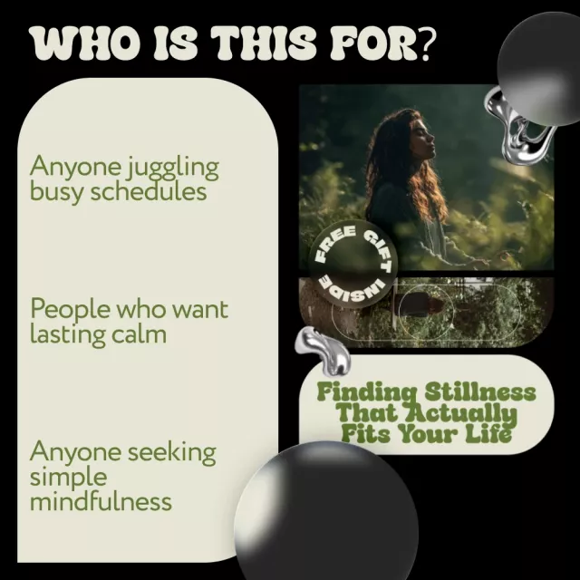 Life is busy, noisy, and rarely slows down on its own. Finding Stillness That Actually Fits Your Life was created for real people with real schedules who want calm without pressure, guilt, or rigid routines. This thoughtfully designed digital guide helps you build inner stillness in a way that adapts to your lifestyle instead of competing with it. Rather than asking you to escape your life to find peace, this guide shows you how to create it right where you are.