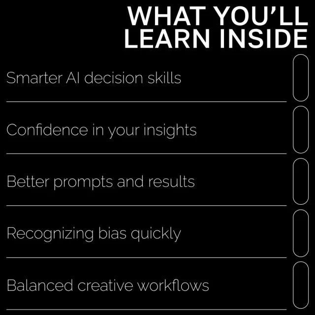 • Developing Your AI Radar — Identify bias, question outputs, and grow confident in your own decisions.