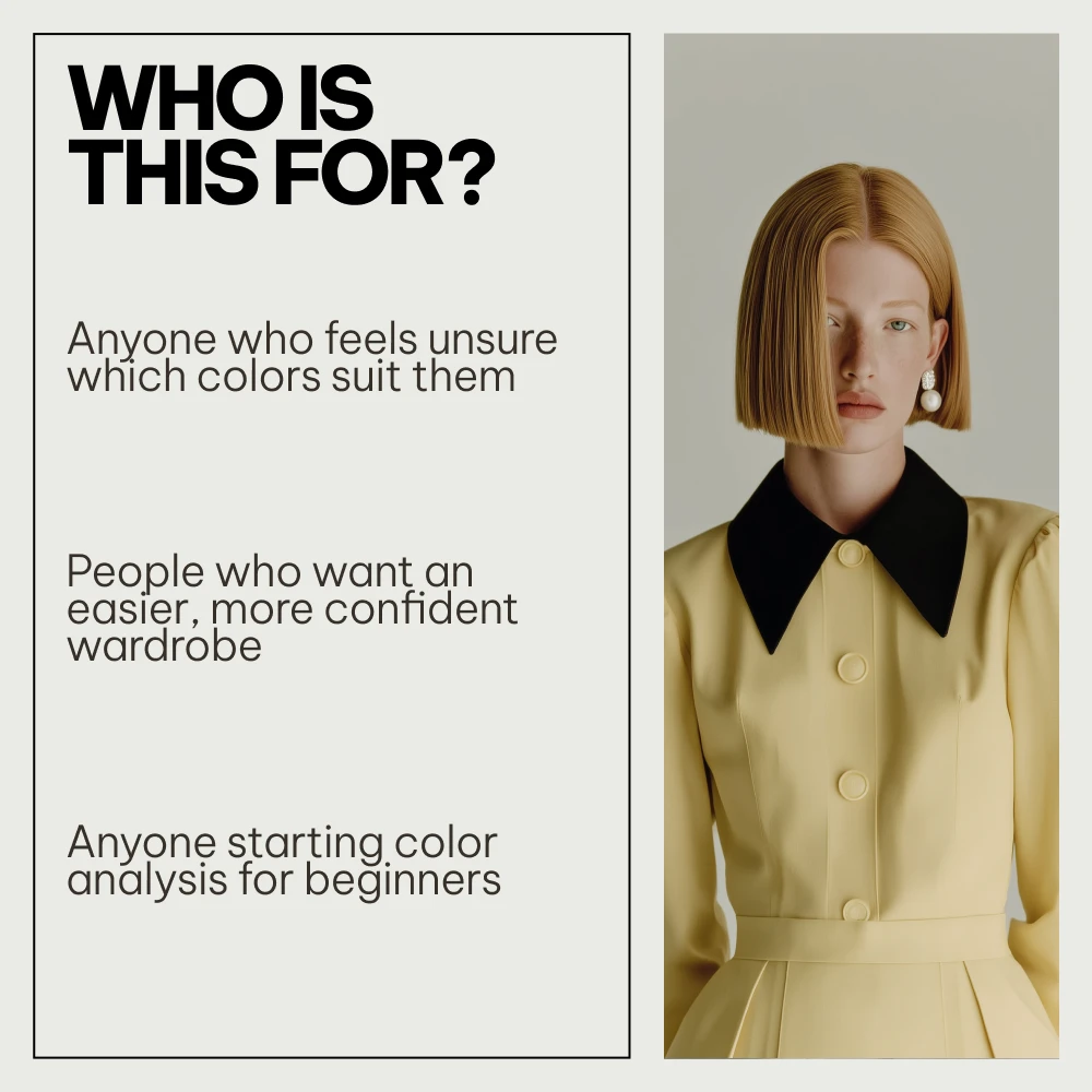 This bundle is ideal for beginners, creatives, style lovers, and anyone craving clarity around personal color choices. Unlike generic guides, this toolkit combines fashion psychology, practical checklists, and step-by-step explanations in one cohesive system. You don’t need prior knowledge—everything is explained simply, making color analysis for beginners approachable, fun, and actionable.
