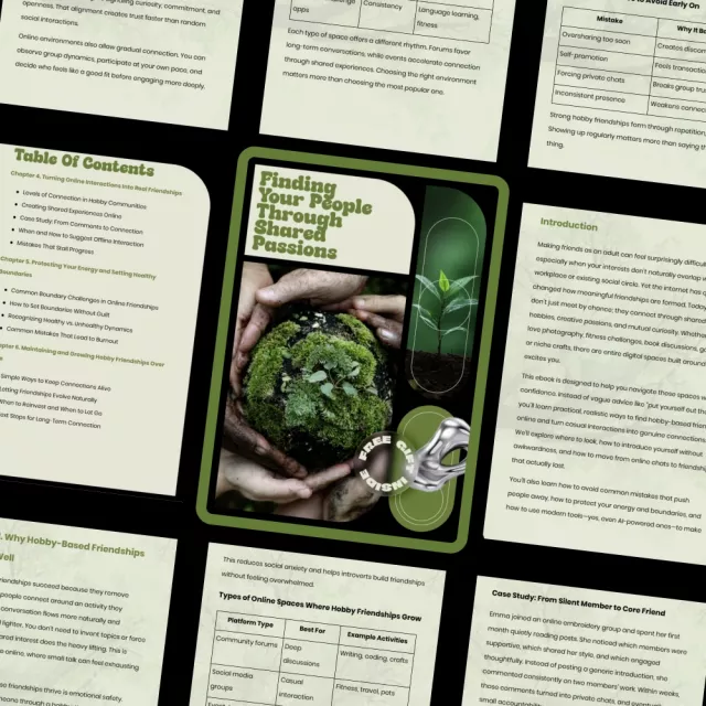 If you’re ready to stop feeling like the outsider and start building friendships around what genuinely excites you, Finding Your People Through Shared Passions is your next step. Download the ebook today and start creating connections that feel natural, supportive, and real.