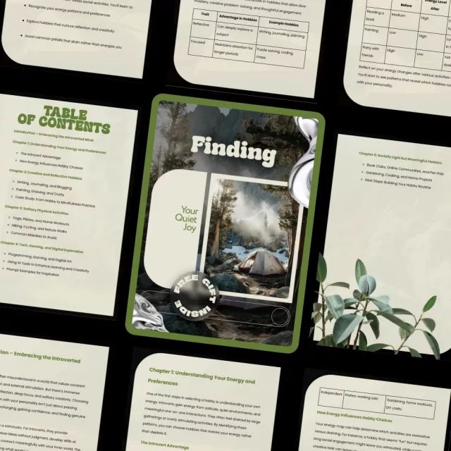 Finding Your Quiet Joy is a thoughtfully written ebook designed to help you reconnect with yourself through hobbies and routines that truly feel right. If you have ever felt overwhelmed by loud trends or pressured into activities that drain your energy, this guide offers a refreshing alternative. It gently explores what suits introverts, helping you choose hobbies that restore, inspire, and fit naturally into your life. Instead of pushing you to be more social or productive, this ebook honors your inner world and shows you how to build joy from it.