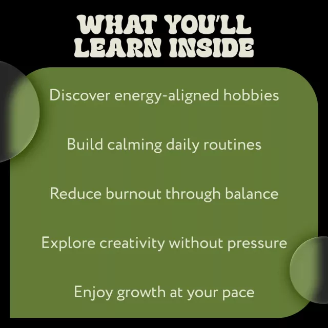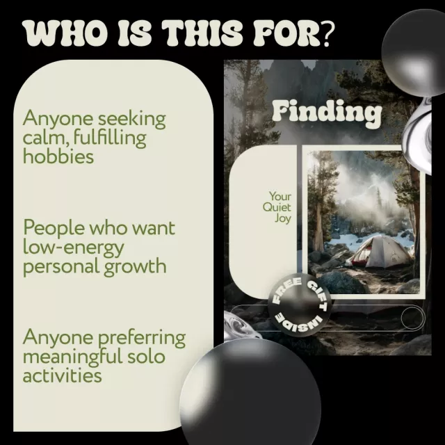 This ebook is perfect for introverts, highly sensitive people, creatives, deep thinkers, and anyone seeking quieter ways to relax and grow. It is especially helpful if you feel burned out, stuck, or unsure which hobbies truly fit your personality.