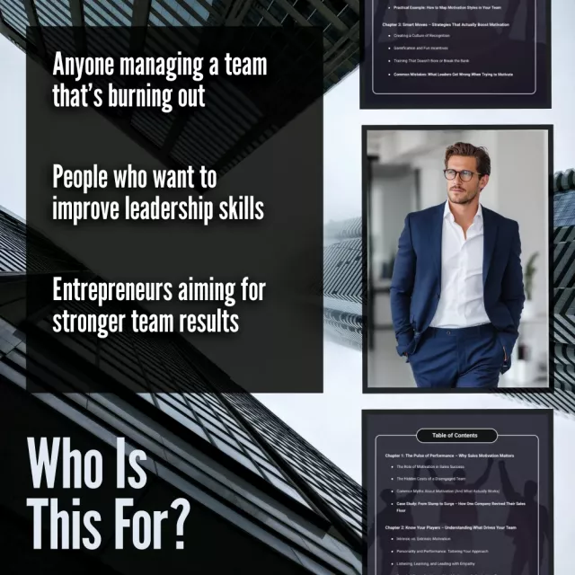 Struggling with a disengaged sales team, missed targets, or morale dips that drag performance down? Fire Up the Floor: A No-Fluff Guide to Skyrocketing Your Sales Team’s Motivation is your straight-talking digital playbook for building a fired-up, focused, and unstoppable sales force. This guide strips away the fluff and hands you actionable strategies grounded in real-world success stories, psychological insights, and proven leadership practices. Whether you lead a small inside sales team or manage a high-powered B2B floor, this digital download is your step-by-step solution for how to motivate sales team members—individually and collectively—to hit goals and love the process.