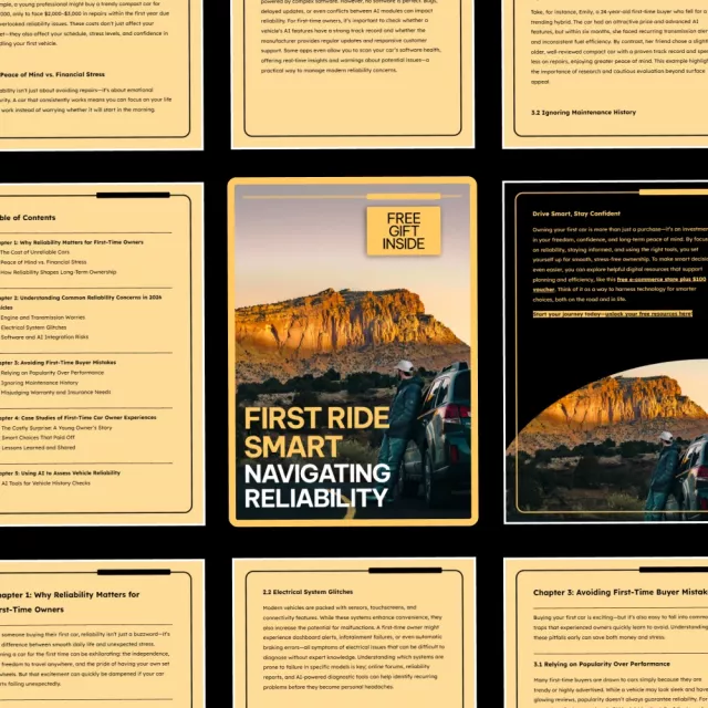 As a first-time car owner, navigating the complexities of vehicle reliability can feel overwhelming. That’s where First Ride Smart: Navigating Reliability comes in. This comprehensive eBook is the ultimate guide to ensuring that your car ownership experience is smooth, stress-free, and free of costly surprises. Whether you’re buying your first car in 2026 or just want to make smarter decisions about reliability, this guide helps you make informed choices that will pay off for years to come.