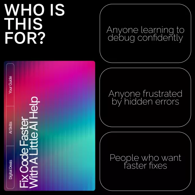 Perfect for new coders, hobby programmers, students, and anyone who wants to improve their debugging skills without feeling overwhelmed. If you want a clear, friendly guide that shows you exactly how to work with AI tools instead of guessing what to ask, this is for you.