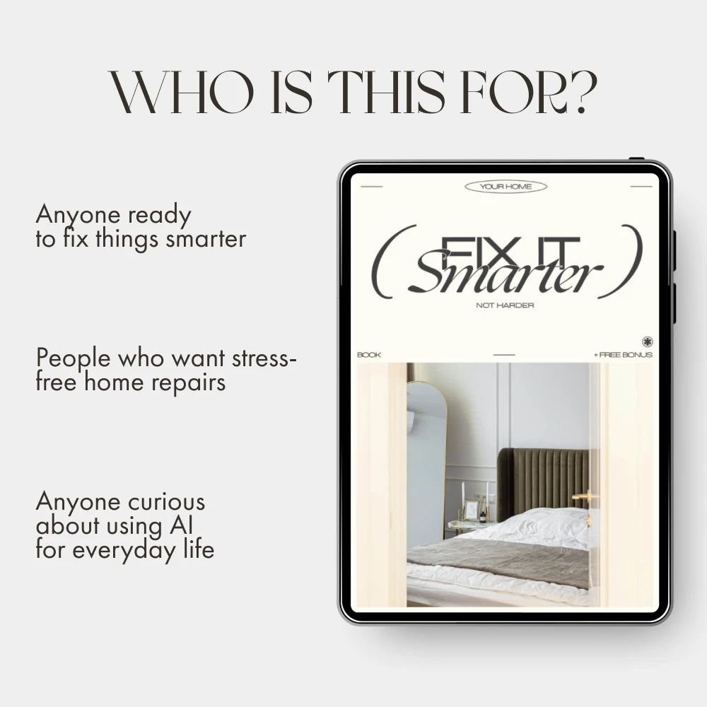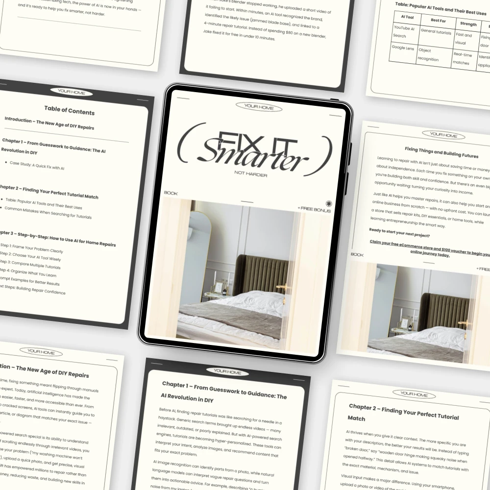 Unlike generic DIY guides, Fix It Smarter Not Harder doesn’t just tell you what to fix—it teaches you how to use AI to find DIY repair tutorials tailored to your specific needs. With real case studies, practical prompts, and expert-approved AI tool recommendations, this eBook bridges the gap between curiosity and confidence.