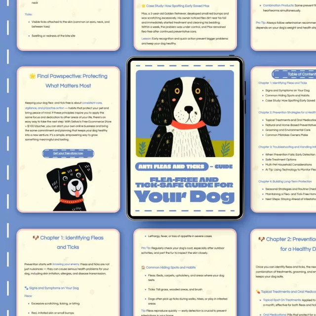 Donβt wait for fleas and ticks to take over your home. Get the Flea-Free and Tick-Safe Guide for Your Dog today and learn how to prevent fleas and ticks on dogs the smart way. Download now to give your pup the comfort, safety, and protection they deserve β all year long.