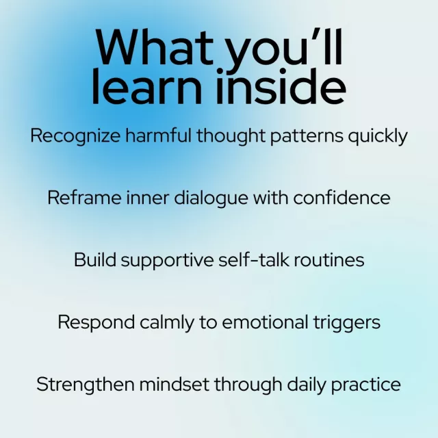 Unlike generic self-help resources, this ebook focuses on awareness first, then action. It doesn’t just tell you to “think positive.” It shows you how to change negative self talk to positive self talk using proven techniques, relatable examples, and simple daily practices you can actually stick to.