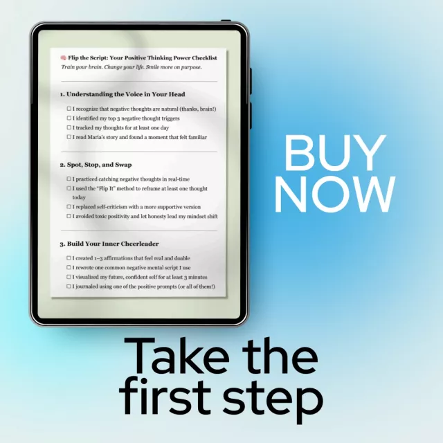 If you are ready to stop battling your thoughts and start working with them, this digital checklist is your next step. Download Flip the Script: Your Positive Thinking Power Checklist today and begin learning how to change negative thoughts to positive thinking one moment at a time.