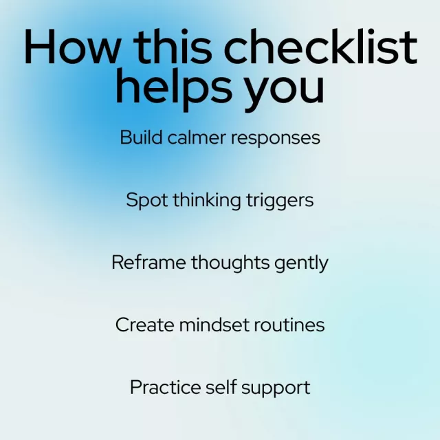 This checklist is for anyone who feels stuck in negative thinking loops, overthinks daily situations, or wants a healthier relationship with their own mind. It is especially helpful for beginners to mindset work, busy adults who want guidance without overwhelm, and anyone searching for a practical way to practice how to change negative thoughts to positive thinking.