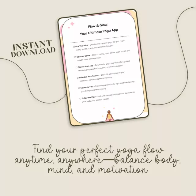 Flow & Glow: Your Ultimate Yoga App Checklist | Digital Download for Mindful Living, Yoga Routine Planning & Daily Wellness | Perfect Companion for All Yoga Apps