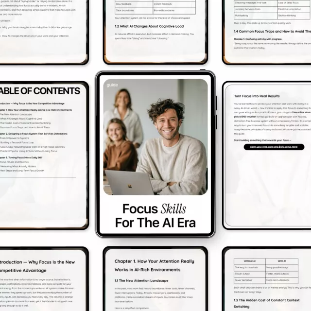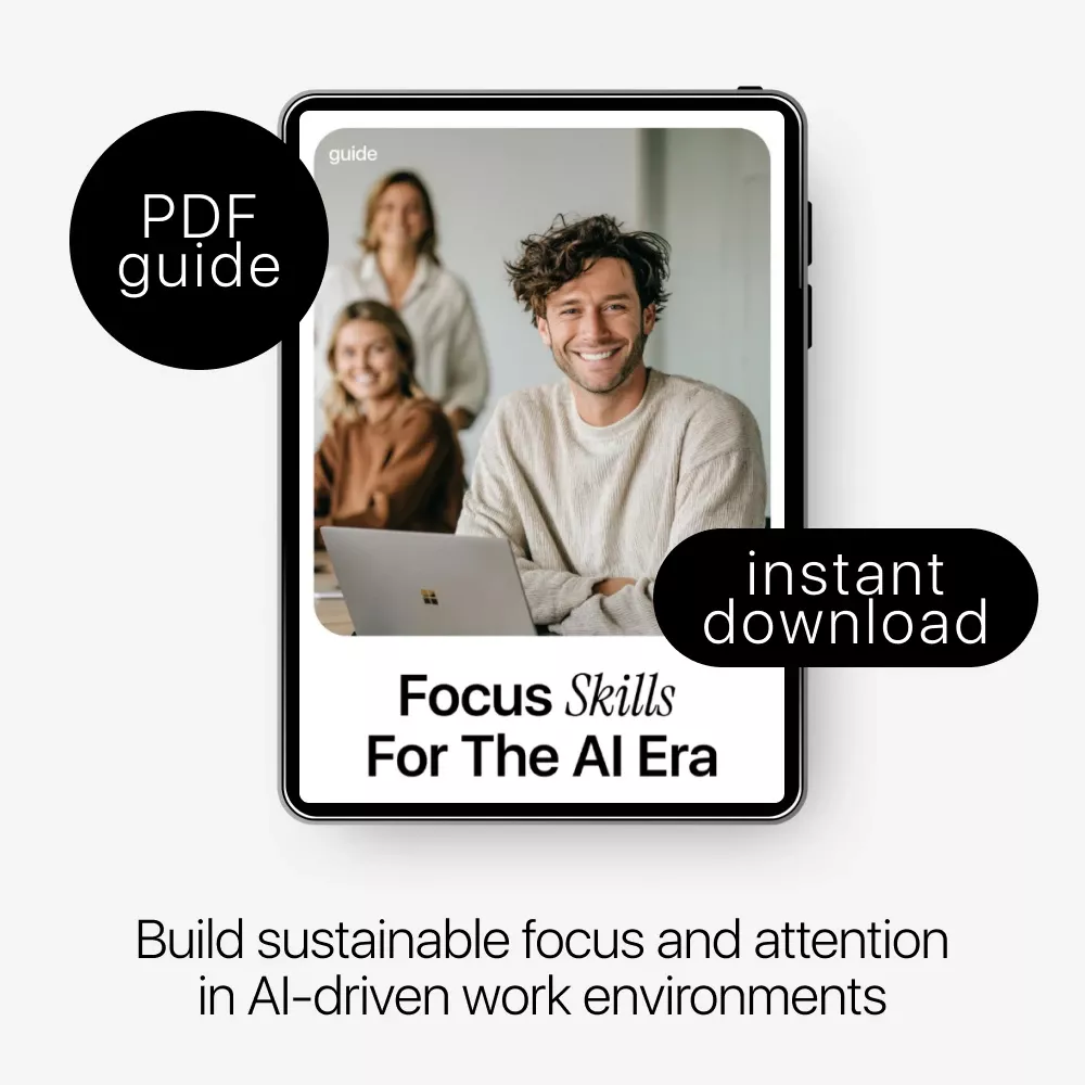 If you’re ready to stop fighting distractions and start working with clarity and intention, Focus Skills for the AI Era is your next step. Download the guide today and begin turning focus into a daily, trainable skill that works with AI—not against it.