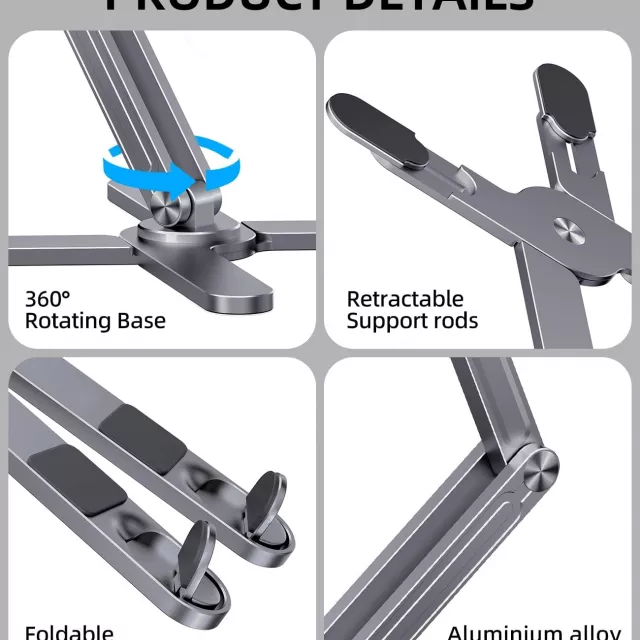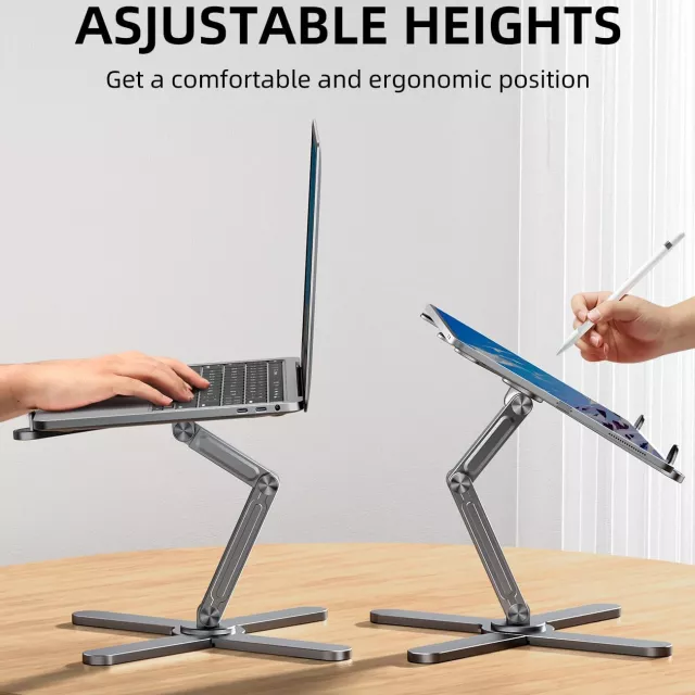 Transform how you work, study, or create with the Foldable 360° Laptop Stand — a sleek, aluminum alloy stand designed to make your everyday tech use more comfortable, ergonomic, and efficient. Whether you’re at your desk, on the couch, or traveling, this adjustable stand provides the support and flexibility your laptop or tablet deserves. With a smooth 360-degree rotating base, adjustable height, and superior heat dissipation, this is more than just a stand — it’s a smarter way to work.