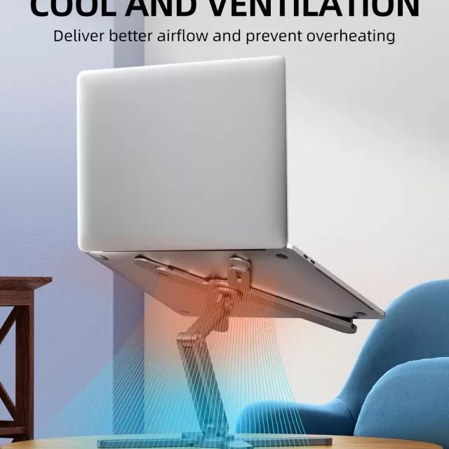 This stand is thoughtfully crafted with durable aluminum alloy and anti-slip silicone pads to keep your device stable and scratch-free. Its open, hollow design improves airflow, preventing your laptop from overheating during extended use. The triangular support structure ensures solid stability and can securely hold devices between 10 and 16 inches — perfect for laptops, tablets, or books. With a creative foldable design, it’s easy to pack away or carry wherever work takes you.