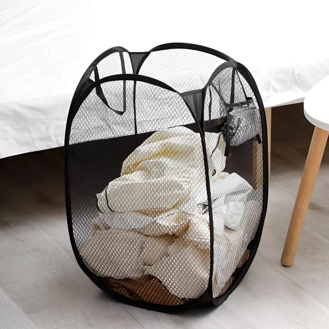 Made from high-quality polyester mesh and reinforced with a sturdy steel wire skeleton, this laundry basket is built to last. Its foldable design allows you to easily store it when not in use, saving valuable space in your home. The breathable mesh material promotes airflow, helping to reduce odors and keep your laundry fresh until it’s time to wash. With two stylish color options—classic black and modern white—you can choose the one that best complements your decor.