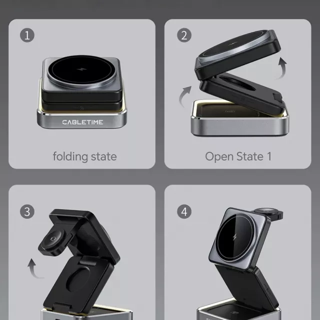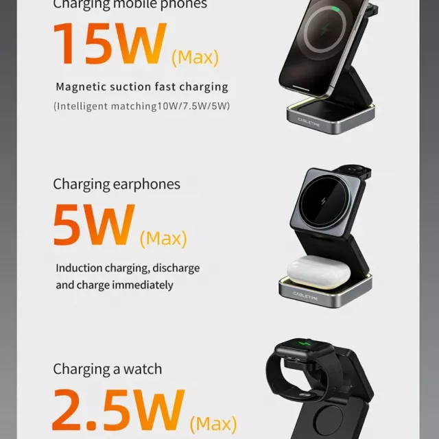 Foldable Magnetic 3-in-1 Wireless Charger Stand for Phone, Watch & Earbuds