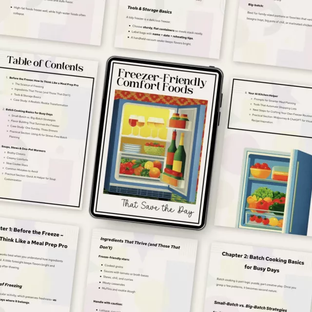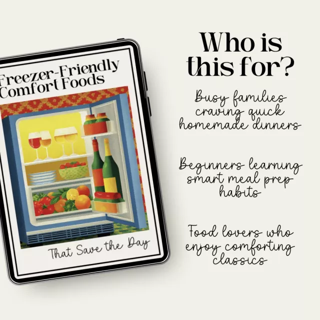 Take the stress out of mealtime with Freezer-Friendly Comfort Foods That Save the Day — your all-in-one digital eBook for mastering freezer-friendly comfort food recipes. This guide is designed for busy home cooks who crave hearty, homemade meals without the daily hassle. Learn how to batch cook like a pro, freeze with confidence, and use smart tools (including AI helpers) to make meal planning easier and more creative than ever. From creamy casseroles to cozy soups and freezer-ready desserts, you’ll discover how to stock your freezer with food that truly comforts.