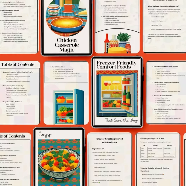 As a busy professional, I found this bundle to be quite the time-saver. It's filled with easy-to-follow recipes for comfort foods that can be prepped ahead of time and stored in the freezer. The chicken casserole guide was particularly helpful - it not only provided me with a foolproof recipe but also offered variations and tips for enhancing my casserole game! With these meals ready in my freezer, I've been able to spend more quality time with family instead of fretting over what to cook each day.