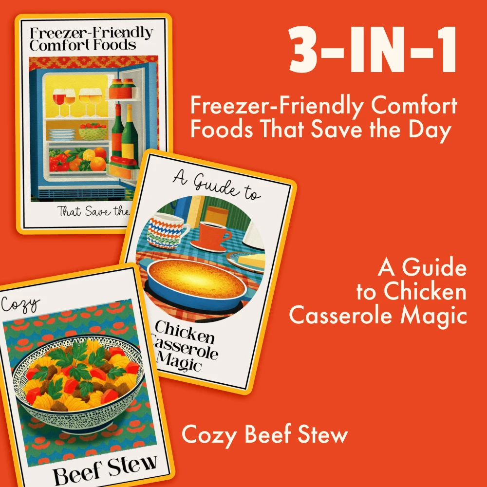 Life gets busy, and dinner planning can often be the last thing on your mind. That’s why the Freezer-Friendly Meals Bundle for Busy Weeks is here to help you streamline mealtime with comforting, easy-to-make recipes. This 3-in-1 bundle combines everything you need to prepare a week’s worth of cozy, freezer-friendly meals in no time, allowing you to spend less time in the kitchen and more time with the people you love. Whether you’re a busy professional, a parent on the go, or someone who just loves a hearty home-cooked meal, this bundle has you covered. Say goodbye to last-minute stress and hello to simple, nourishing meals that make life easier.