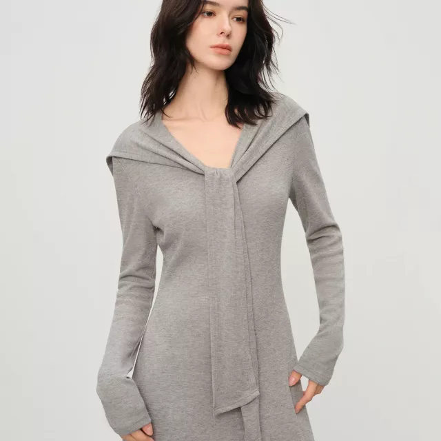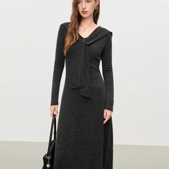 French-Style Winter Knit V-Neck Shawl Dress for Women