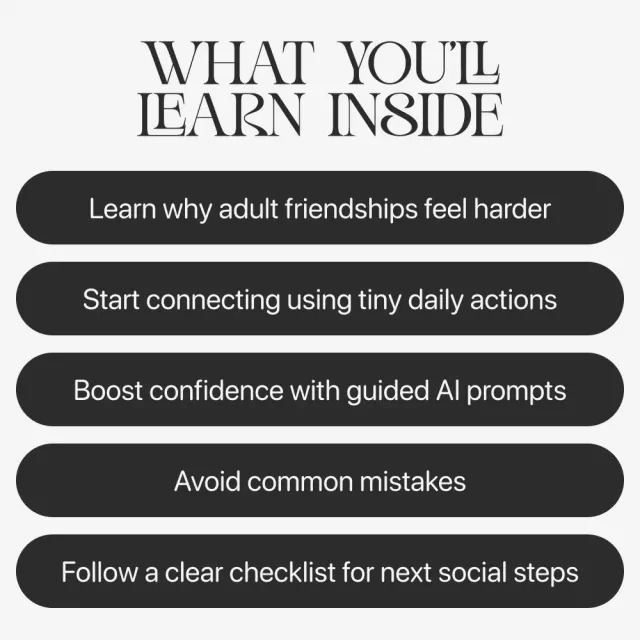 This guide is perfect for adults who want to form meaningful friendships but aren’t sure where to start. It’s especially helpful for anyone feeling isolated, introverted, recently relocated, or simply ready to refresh their social life with intention.