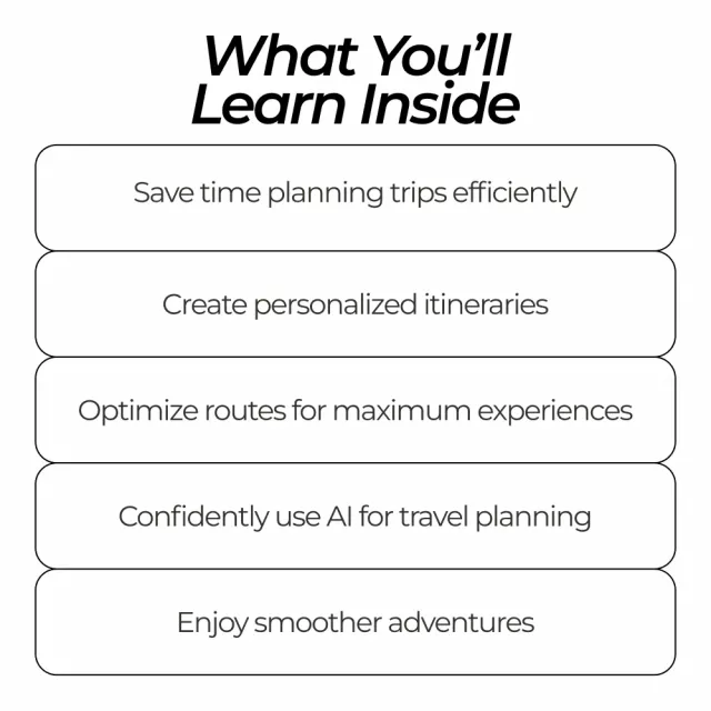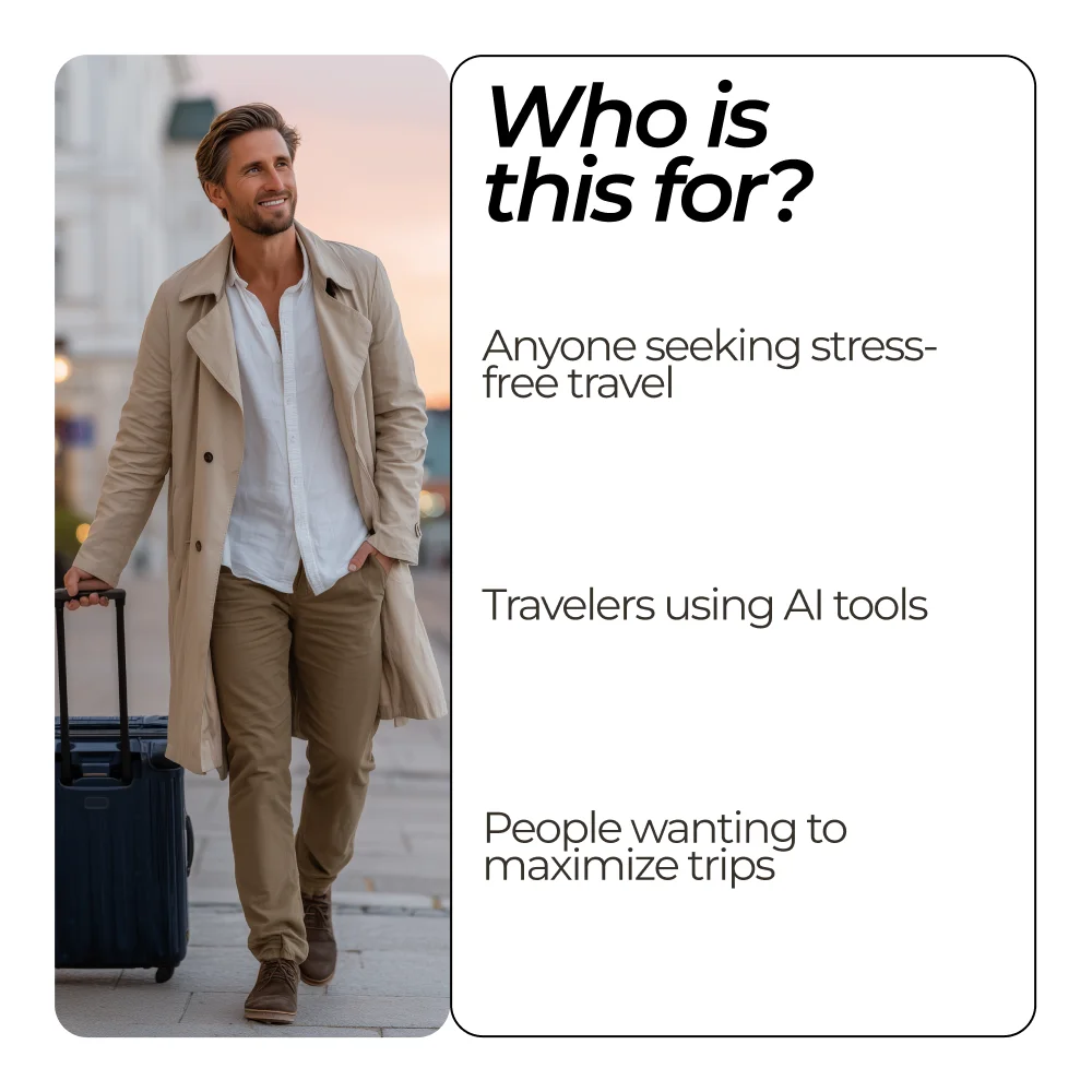 This bundle is perfect for travelers, digital nomads, busy parents, and anyone who wants to plan trips smarter, not harder. It’s ideal for both beginners and seasoned travelers who want to harness the power of AI for creating the best possible itineraries.