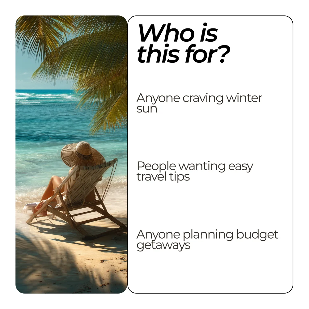 This bundle is perfect for travelers seeking tropical destinations in winter, couples planning romantic escapes, families looking for sun-filled vacations, and solo adventurers eager to trade snow for surf. It’s also ideal for anyone who wants expert advice in one convenient digital download, making vacation planning simple, fun, and stress-free.