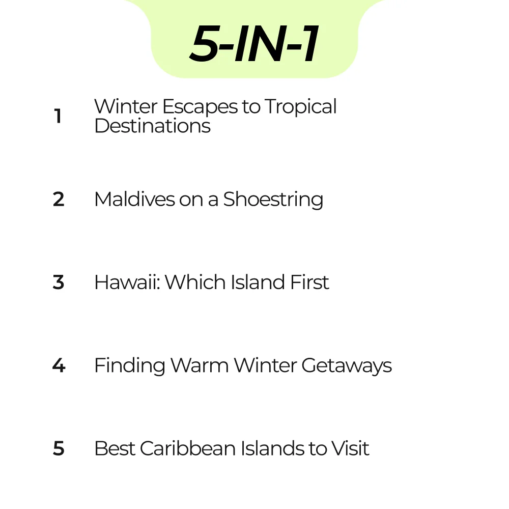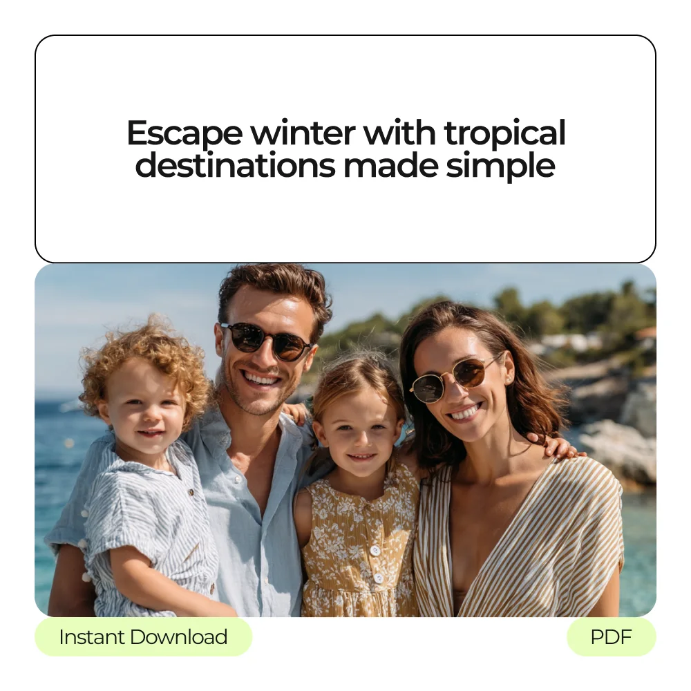 Stop dreaming about warm sand and sparkling waters—make it happen! Download the From Cold to Coastline Escape Bundle now and unlock the secrets to unforgettable winter vacations in tropical destinations in winter.