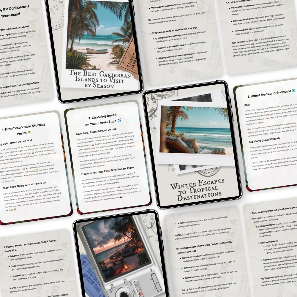 The From Cold to Coastline Escape Bundle isn’t just a travel guide—it’s a comprehensive, practical toolkit for winter getaway planning. Unlike generic guides, it combines affordability tips, seasonal advice, and destination comparisons all in one bundle, ensuring you find the perfect tropical destination tailored to your style and budget.