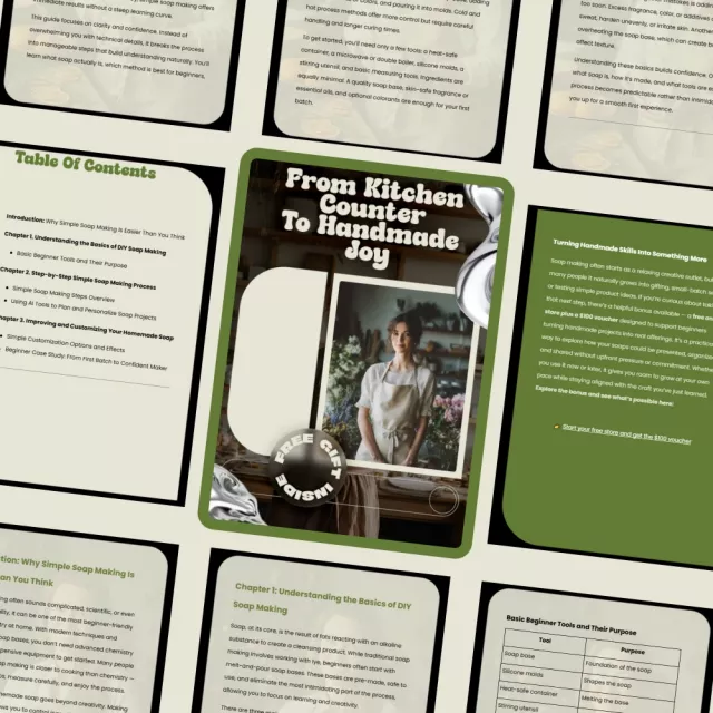 Ever looked at handmade soap and thought, “I wish I could do that”? From Kitchen Counter to Handmade Joy is a friendly, practical guide designed to show you that soap making doesn’t have to be complicated, expensive, or intimidating. This digital guide walks you through diy soap making simple steps using clear explanations and an encouraging tone, helping you turn everyday curiosity into a creative and rewarding hobby—all from your own kitchen counter.
