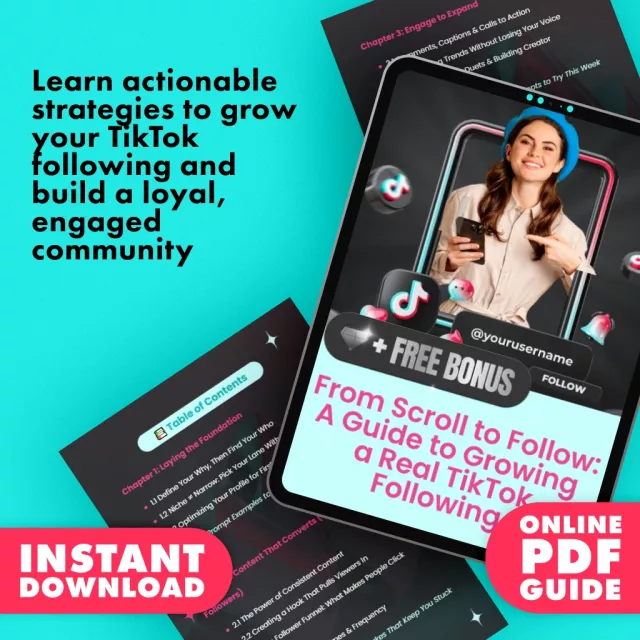 From beginner creators to seasoned influencers, this guide is perfect for anyone looking to grow their TikTok following. Whether you want to build your personal brand, promote a business, or simply gain more followers, this digital download will give you the tools and techniques to succeed.